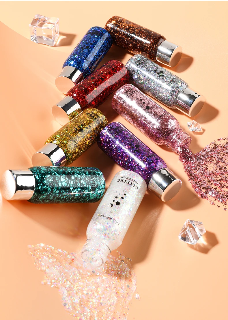 Gel Brilhante Lantejoulas, Brilho Corporal, Longa Atuação, Rosto, Olhos, Cabelo, Formatura, Festa, Balança de Sereia, Não é Fácil de Tirar Maquiagem